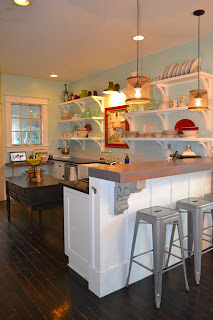 The wood slab that makes up the breakfast bar is from my late Grandfather, and is supported by some antique architectural corbels I picked up at a local sale.